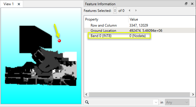 The output raster feature has a Nodata Value band property now, set to zero (0).