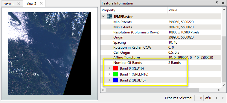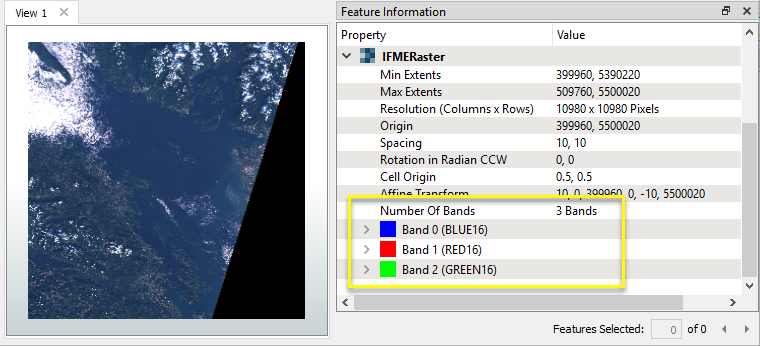 Though the image visually appears the same, as viewed in the FME Data Inspector, the band order is important if we wish to write the data to most raster formats.