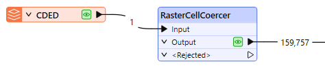 The RasterCellCoercer accepts raster input features. Depending on the choice of Output Cell Geometry - points or polygons - either a point is created at each cell origin, or a polygon is traced around the boundary of each cell.
