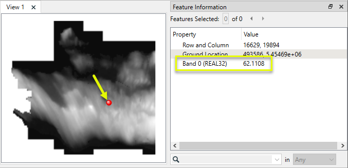 A raster feature is output, and all cells with elevations that fell within the range now have an elevation value of 0.
