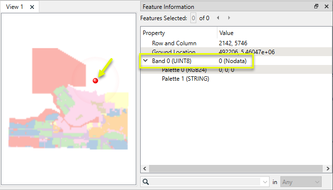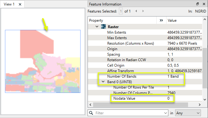 The source raster represents zoning areas, and has one band (with palettes), with a specified Nodata Value of zero (0).
