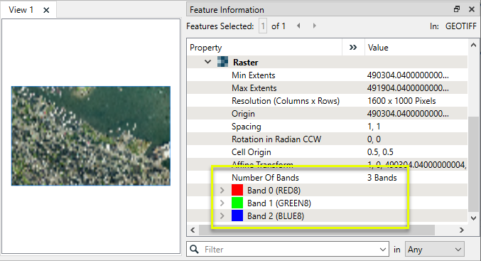 Extracts the band and palette properties of a raster feature and exposes them as attributes. |