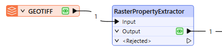 The RasterPropertyExtractor receives raster features, and extracts basic information about their geometry. The results are added as attributes, and output with the original feature.