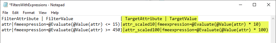 These are defined in the external lookup table, and are identified with the keyword prefix fmeexpression=.