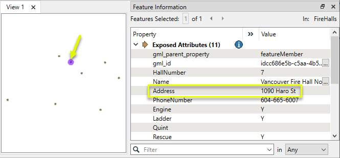 In this example, we have a dataset of Fire Halls, which includes point geometry and some attributes. They have a street address, but not a complete postal address.