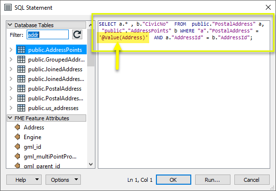 - The PostalAddress table is being joined to the feature using PostalAddress field.