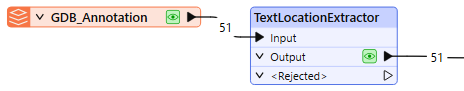 Text properties including the text string, size, and rotation are discarded. To extract them into attribute values, use a TextPropertyExtractor prior to the TextLocationExtractor.